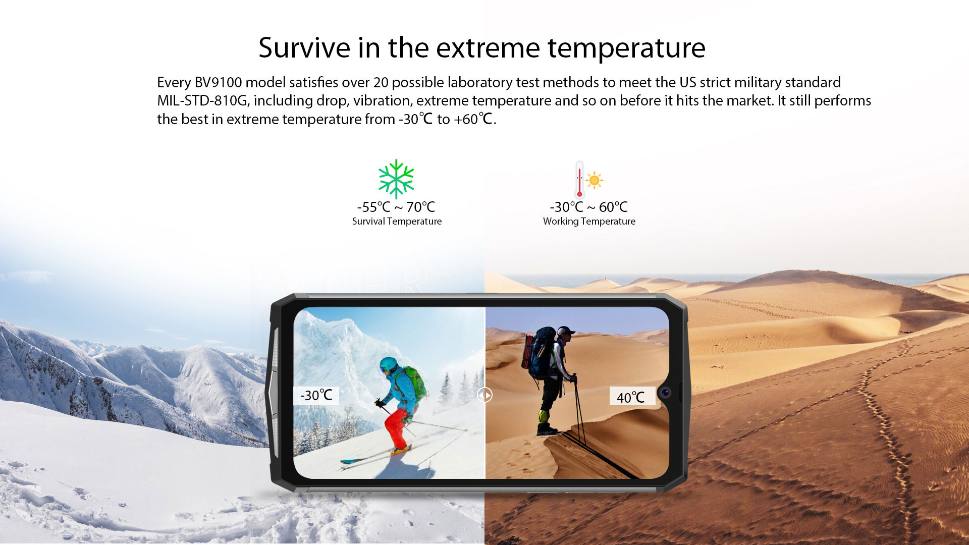 • Смартфон может работать под водой (на глубине до 5м), при высоких (до +60) и низких (до -40) температурах, не боится падения с высоты (до 5м), выдерживает внешнее давление в 0,5 тонны, также внутрь телефона гарантированно не попадет пыль, а химически активные вещества не повредят корпус